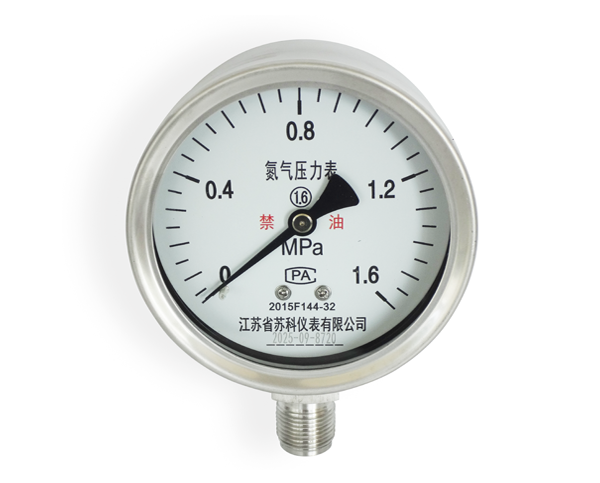 氮氣壓力表適用于測量密閉容器或者管道內氮氣介質的壓力的場合,氮氣壓力表由導壓系統、齒輪傳動機構、示數裝置、和外殼所組成。外殼為氣密性結構,能有效的保護內部機件免受環境影響。